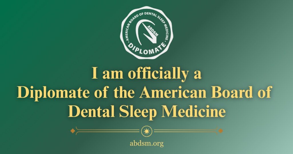 Since graduating Dental School in 2005, I have always had an interest in sleep, the science behind sleep, and how sleep relates to our overall health. I began taking extra education courses on Sleep Apnea and its treatments in 2010. Over the years, I have noticed more and more of my dental patients with signs of Sleep Apnea (tongue size/shape/position, palate shape, associated health conditions, etc). I tell these patients my observations and discuss their sleepiness. 9 out of 10 times they report several Sleep Apnea symptoms. I then urge them to speak with their physician, get tested for sleep apnea, and get proper treatment if needed. Countless patients have returned thanking me because they feel so much better with Sleep Apnea treatment, they have lost weight, are off multiple medications, and because they realize that they will actually live a longer life because of proper oxygen while sleeping.